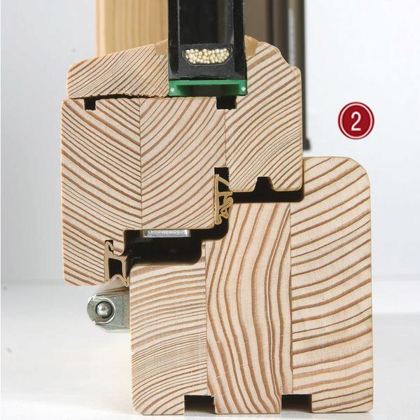Zu Schräg und Profiliert passend, in den Breiten 25, 32 und 40 mm. Rundum oberflächenbehandelt (auch Hirnholzbereich), vollflächig mit farblich zur Fensterfarbe passendem Silikon aufgeklebt – keine Alustege notwendig, daher keine Kältebrücken. Sprossen werden in den Rahmen nachträglich eingezapft. - Silikonkautschukdichtungen