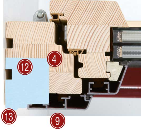 - Glashalteleiste eingefälzt und hochdämmend in „Purenit“ ausgeführt