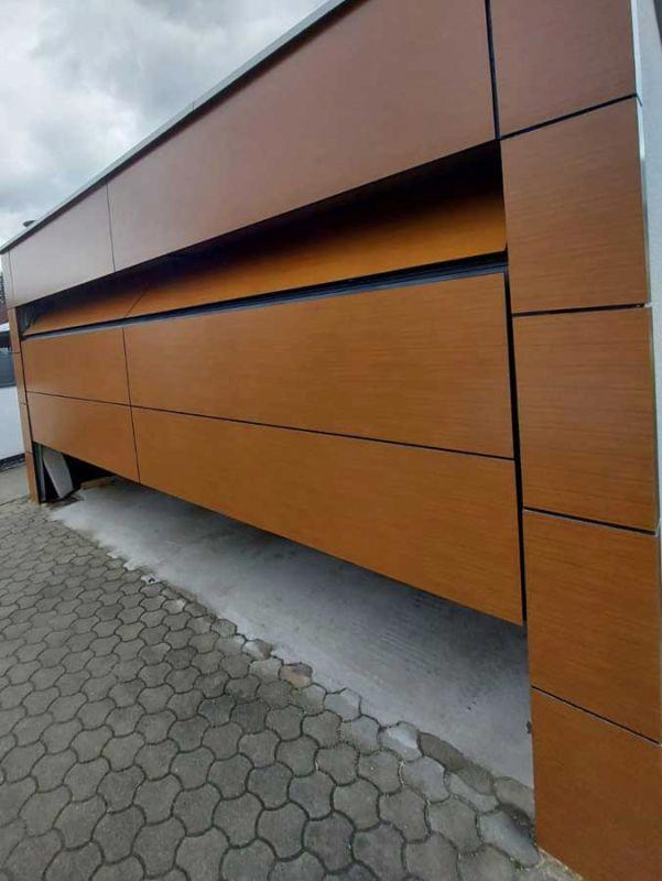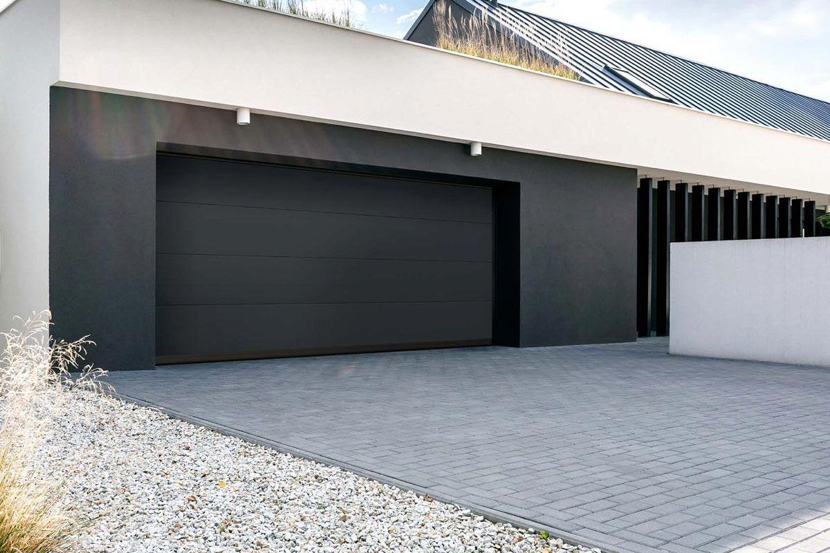 Statt wie ein Schwingtor weit nach außen zu klappen, öffnet sich ein Sektionaltor senkrecht nach oben. Der Mechanismus ist ähnlich wie beim Rolltor. Doch besteht bei diesem System das Torblatt aus mehreren, durch Scharniere verbundenen Paneelen, die waagerecht übereinanderliegen und sich an der Garagendecke entlang zurückziehen.
